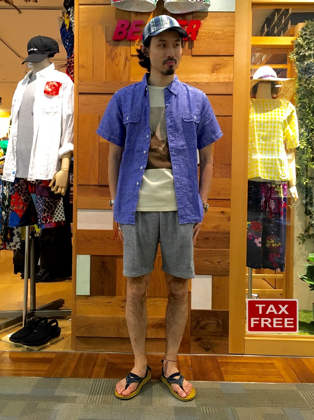 リネンシャツにパイルショーツ。 夏ならではの素材で^ ^