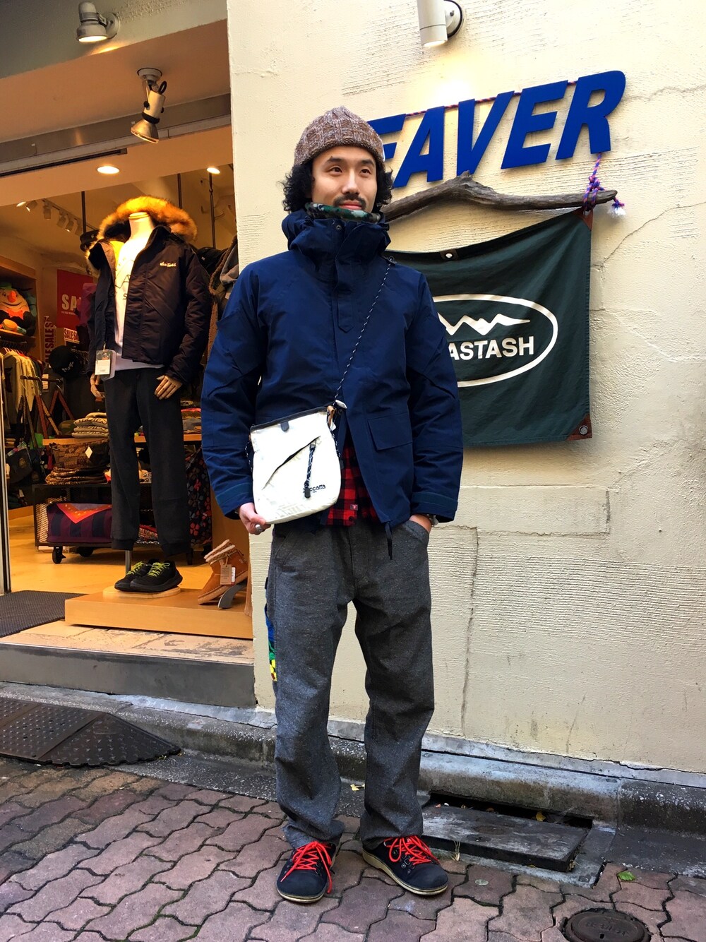 OGAWA(BEAVER 上野店)のニットキャップ/ビーニー「MANASTASH/マナスタッシュ 90's LOGO BEANIE/ニットキャップ (617)」を使ったコーディネート