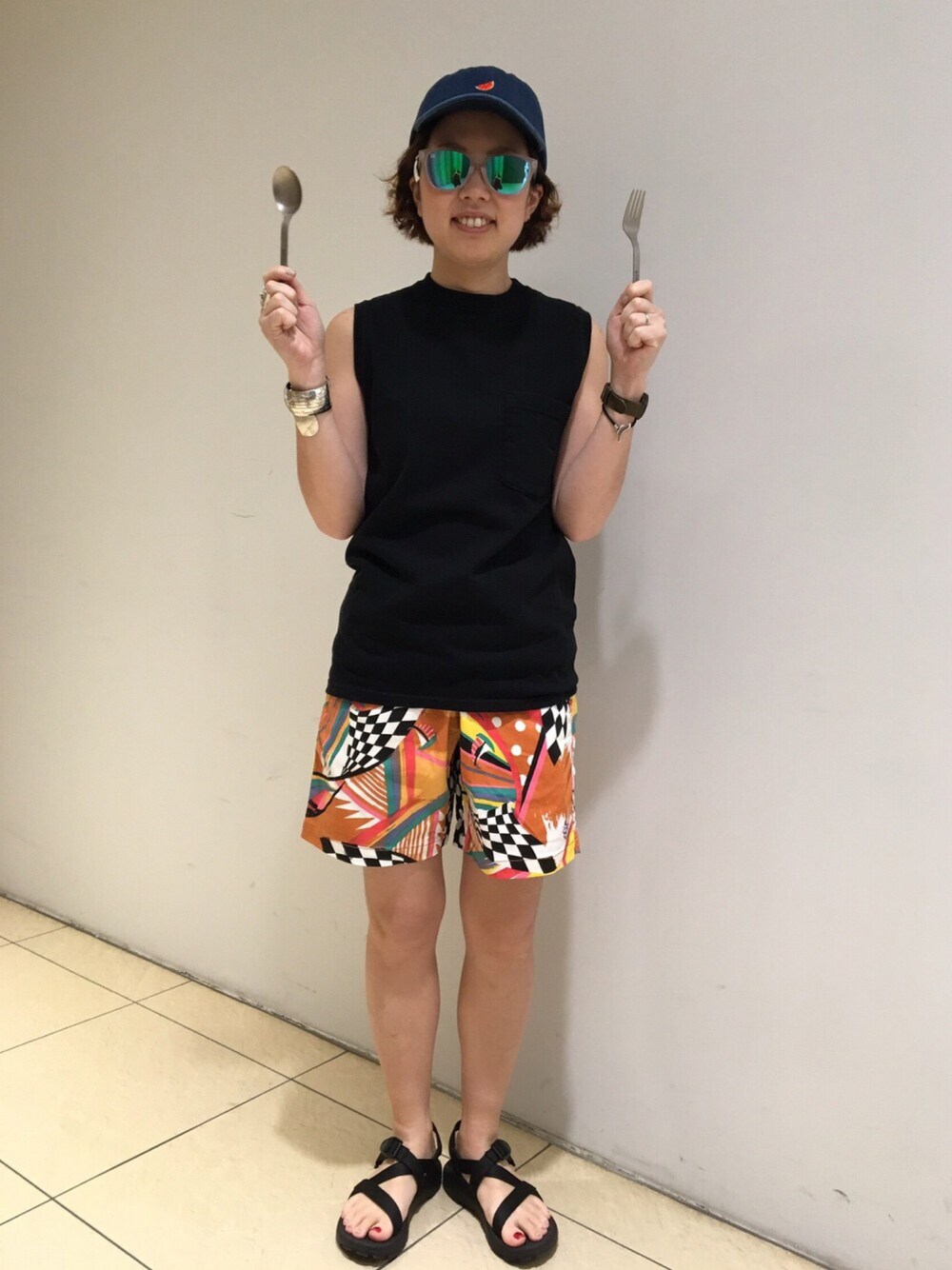 スイキャップ!だよ〜 キャンプフェスにはマイ食器ももっていきたい。 柄ショーツで気分もあがります!