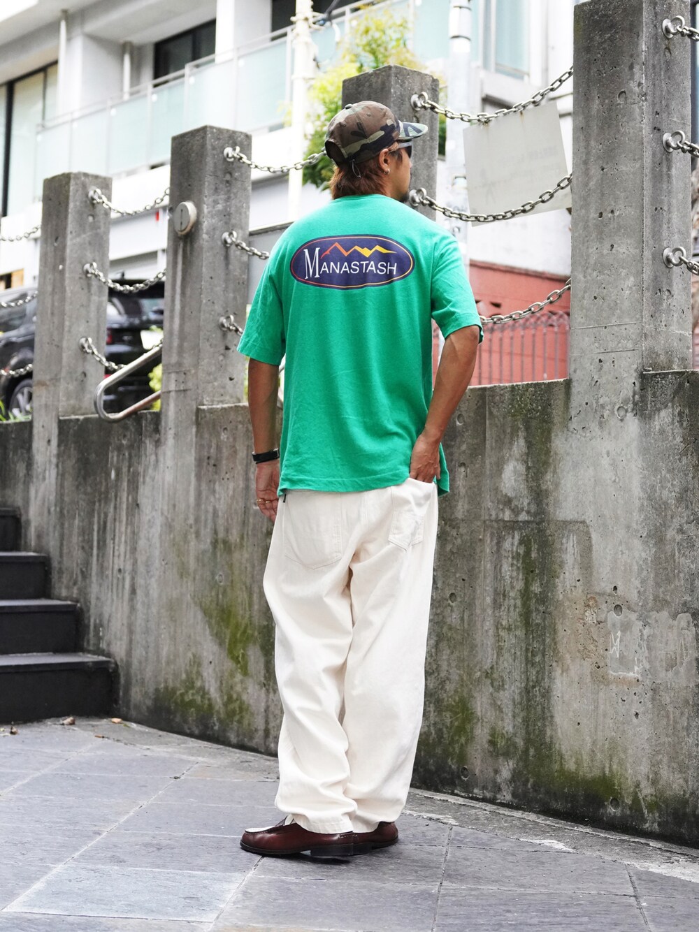 manastash_TERA(MANASTASH 原宿店)のTシャツ/カットソー「MANASTASH/マナスタッシュ/HEMP TEE ORIGINAL LOGO/ヘンプTシャツ」を使ったコーディネート