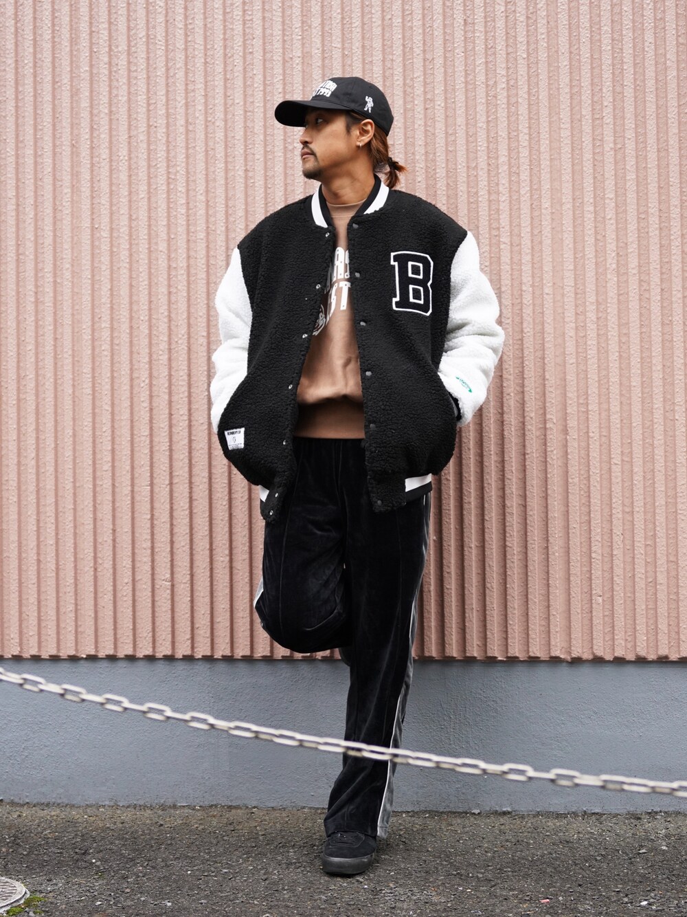 manastash_TERA(MANASTASH 原宿店)のスタジャン「MANASTASH×BILLIONAIRE BOYS CLUB/ビリオネア・ボーイズ・クラブ/BBC BOA VARSITY JACKET WITH BADG」を使ったコーディネート