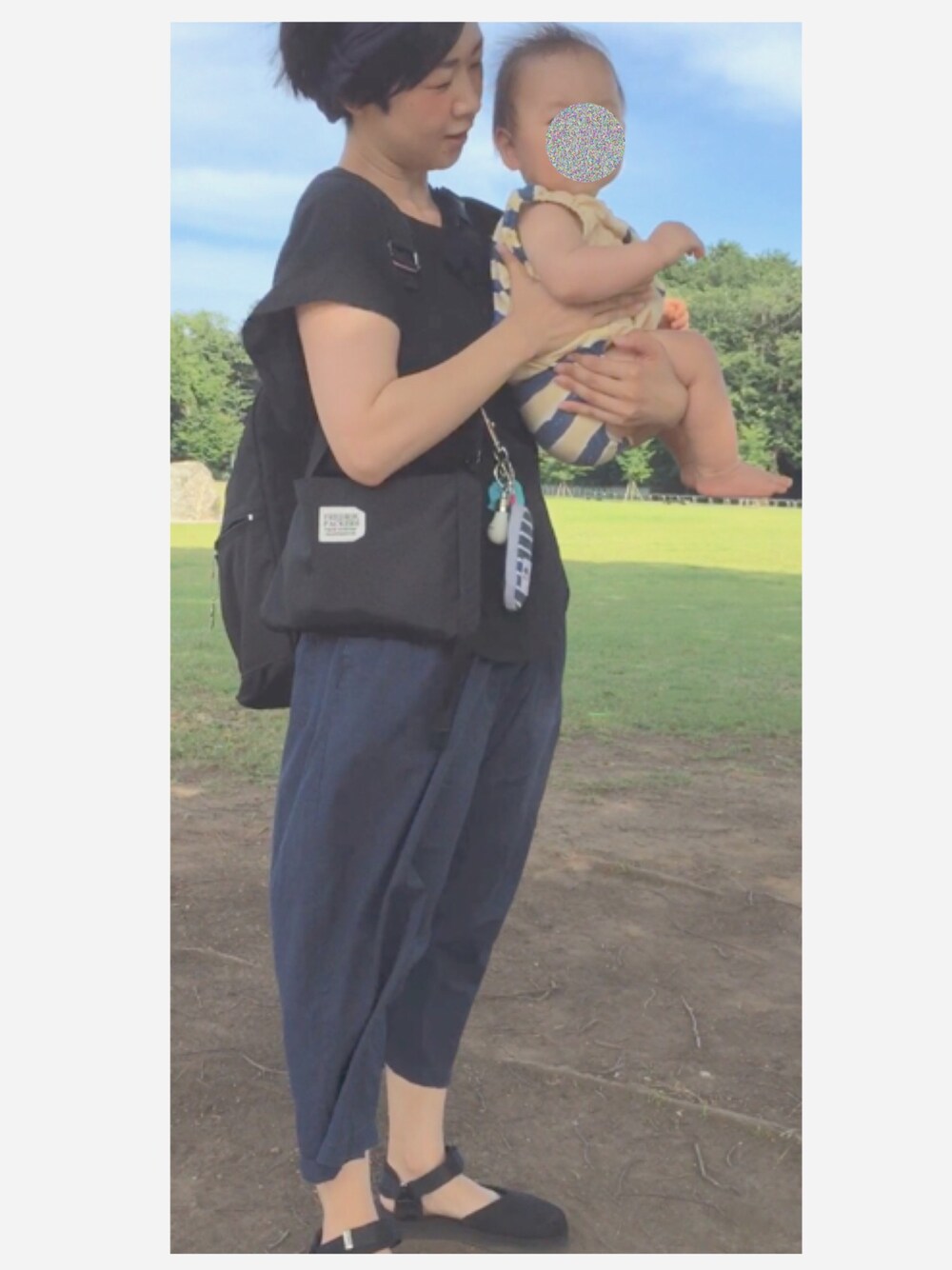 ママコーデ。 ネイビーとブラックのサンドイッチみたいなコーデになりました! スイコックの足袋型サンダルお気に入り(o^^o)