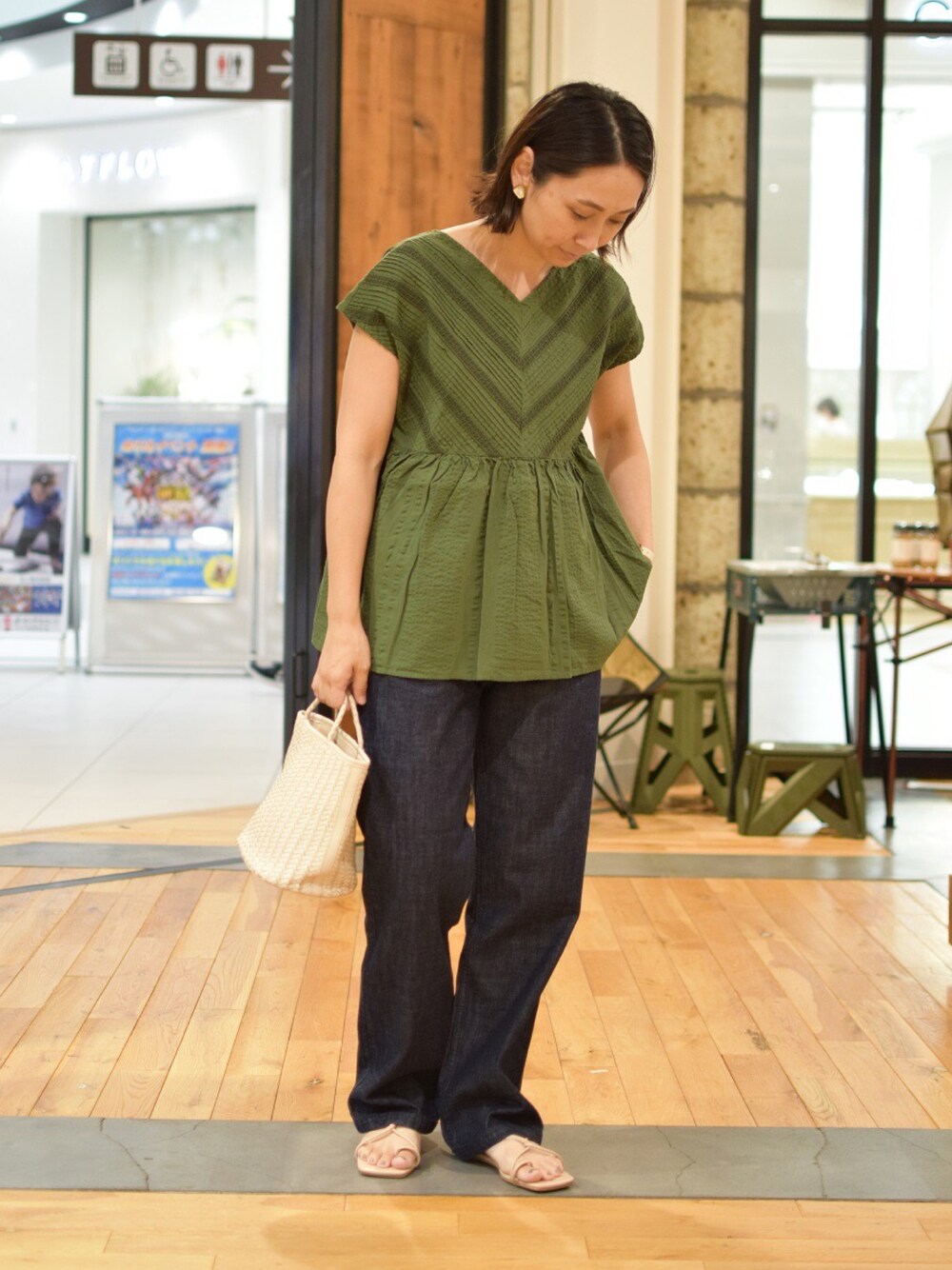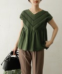 深みのあるグリーンに一目惚れ。 細かいピンタックやレースが綺麗✴︎✴︎ シンプルにデニムとの合わせでキレイ目カジュアルに。