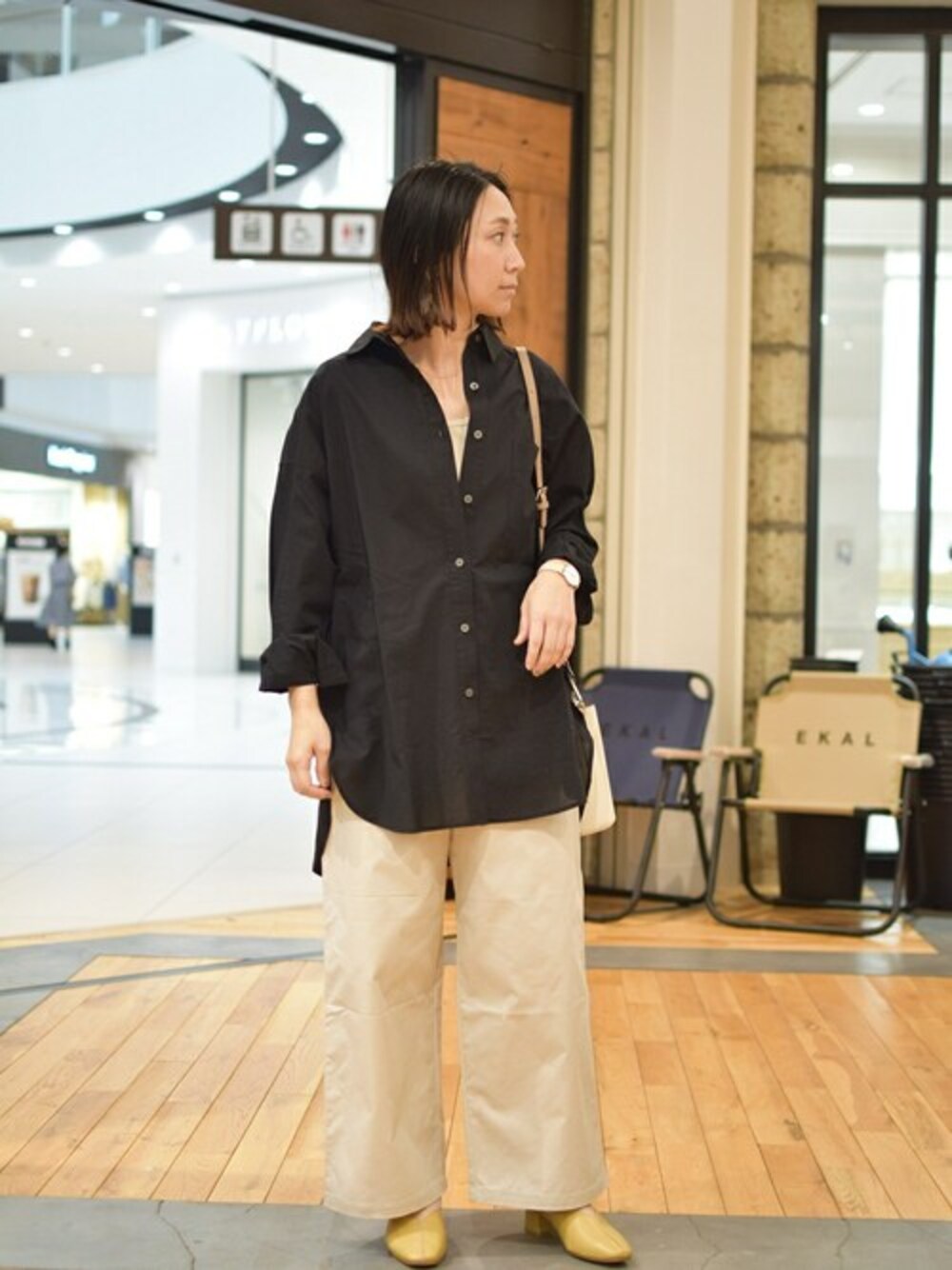 今回のスタイリング☻ FORK&SPOONのシャツを着用してみました。 チュニック丈ぐらいの長さがあるシャツ。 ちょっととろみのあるような生地感です。 低身長でも太めパンツとの相性◎ EKALのパンツと合わせて大人カジュアルコーデに。