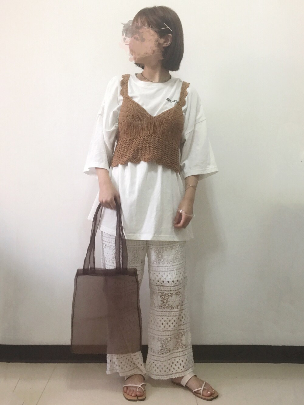 ビ﹏台湾人日本在住のその他パンツ「生地レースワイドパンツ」を使ったコーディネート