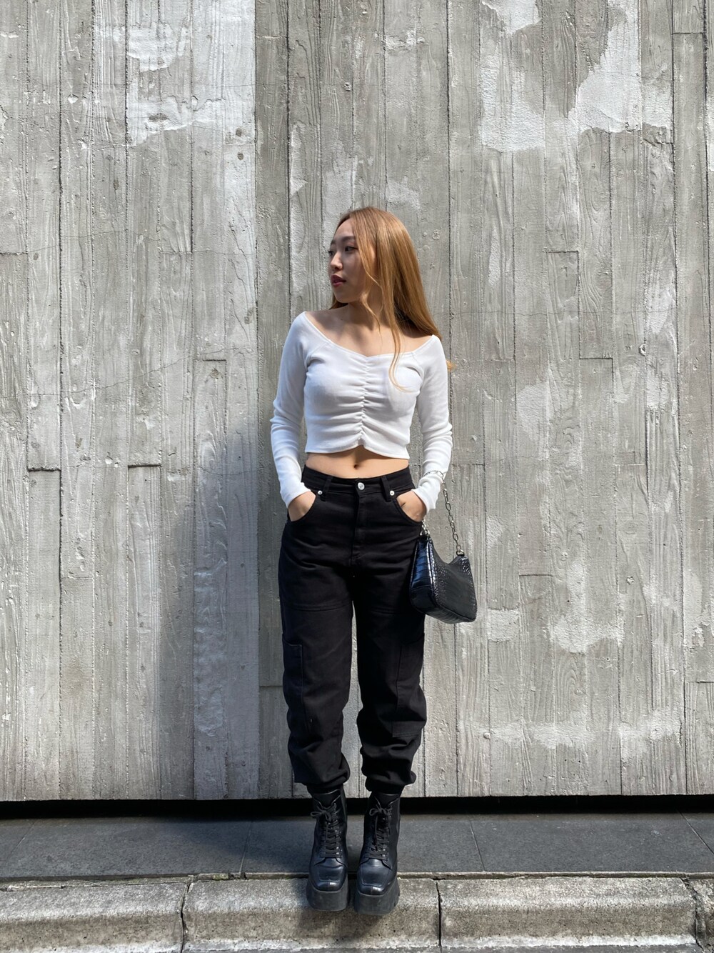 FIG&VIPER _MIKOのTシャツ/カットソー「リブオフショルTOP」を使ったコーディネート