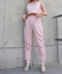 セットアップコーデ💟 PTはサイドにシャーリングが入っていて横から見てもかわいいです♪ トップスもゆったり着れるので動きやすい🤾🏽♀️✨