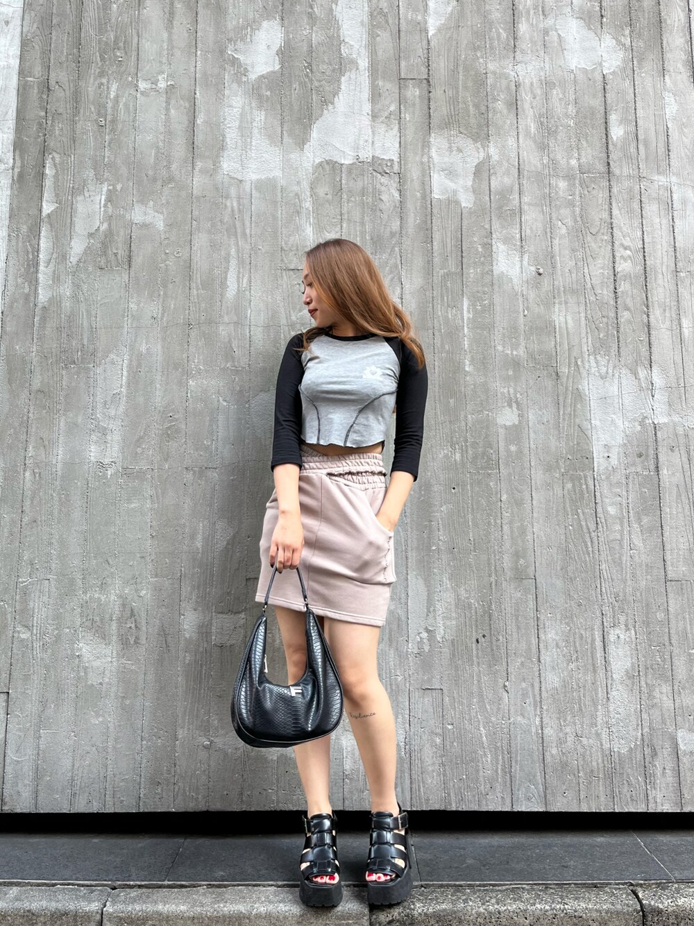 このラグランTはクロップド丈なので ハイウェストのボトムとも合わせやすいです👏🏼 ボディーラインもキレイに見えます♪☺︎