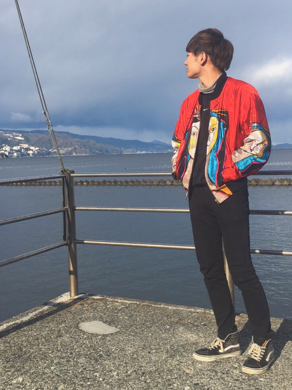 あけましておめでとうございます。 中々写真を撮る機会もなく、お気に入りのコーデが増える一方であげる写真は全然増えません(汗) 今回の写真は、年明け早々に静岡の方までちょいと温泉に入りに行った時のものです。 赤いブルゾンは福島の地元の古着屋で、朝6時半に家を出て初売りという戦いに臨み勝ち取ったものです。 同種のもので白色もあって、それもいつか手に入れたいなぁ……なんて。 とりあえず! このブルゾンは見ての通りピカソの絵のモチーフです!! 滅茶苦茶お気に入りの一品! ただ1月の静岡できるにはあまりにも寒すぎましたけど笑