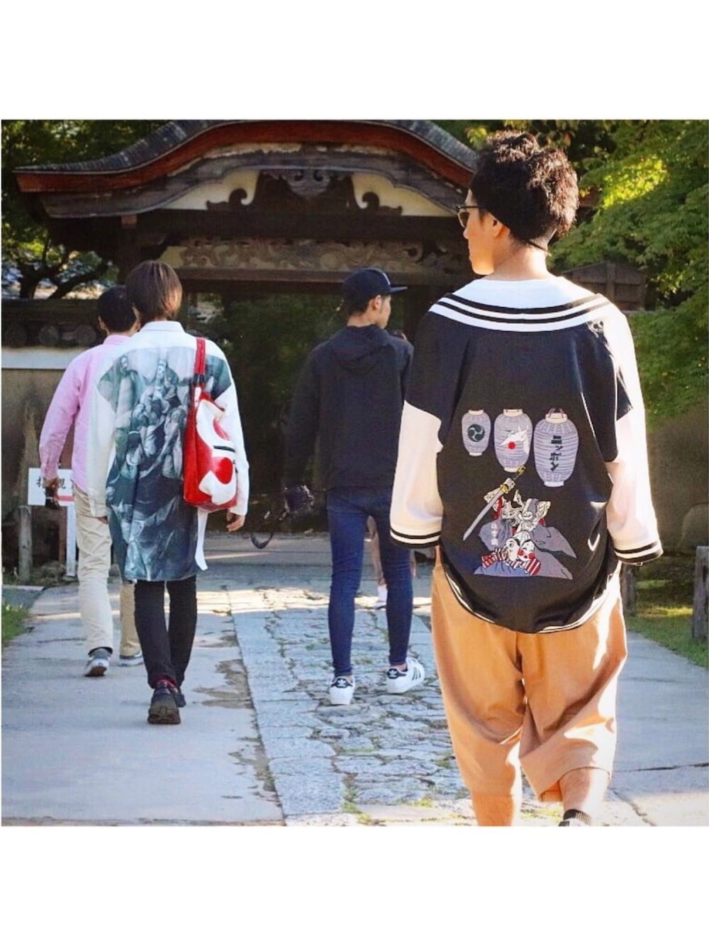 法被(はっぴ)の形にスカジャンデザインをドッキングさせた、Souvenir jacket。 個人的にはルーズシルエットで抜けた感じが好き。 "女性が着ると可愛くて 男性が着ると格好良い" シンプルな答えやけど そこはめちゃくちゃ意識して作った。
