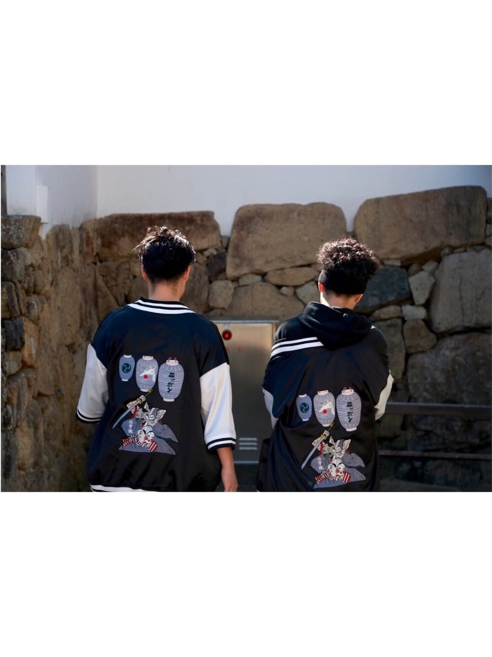 yuki matsuokaのスカジャン「法被(法被)の形にスカジャンどドッキングしたノーカラージャケット。」を使ったコーディネート