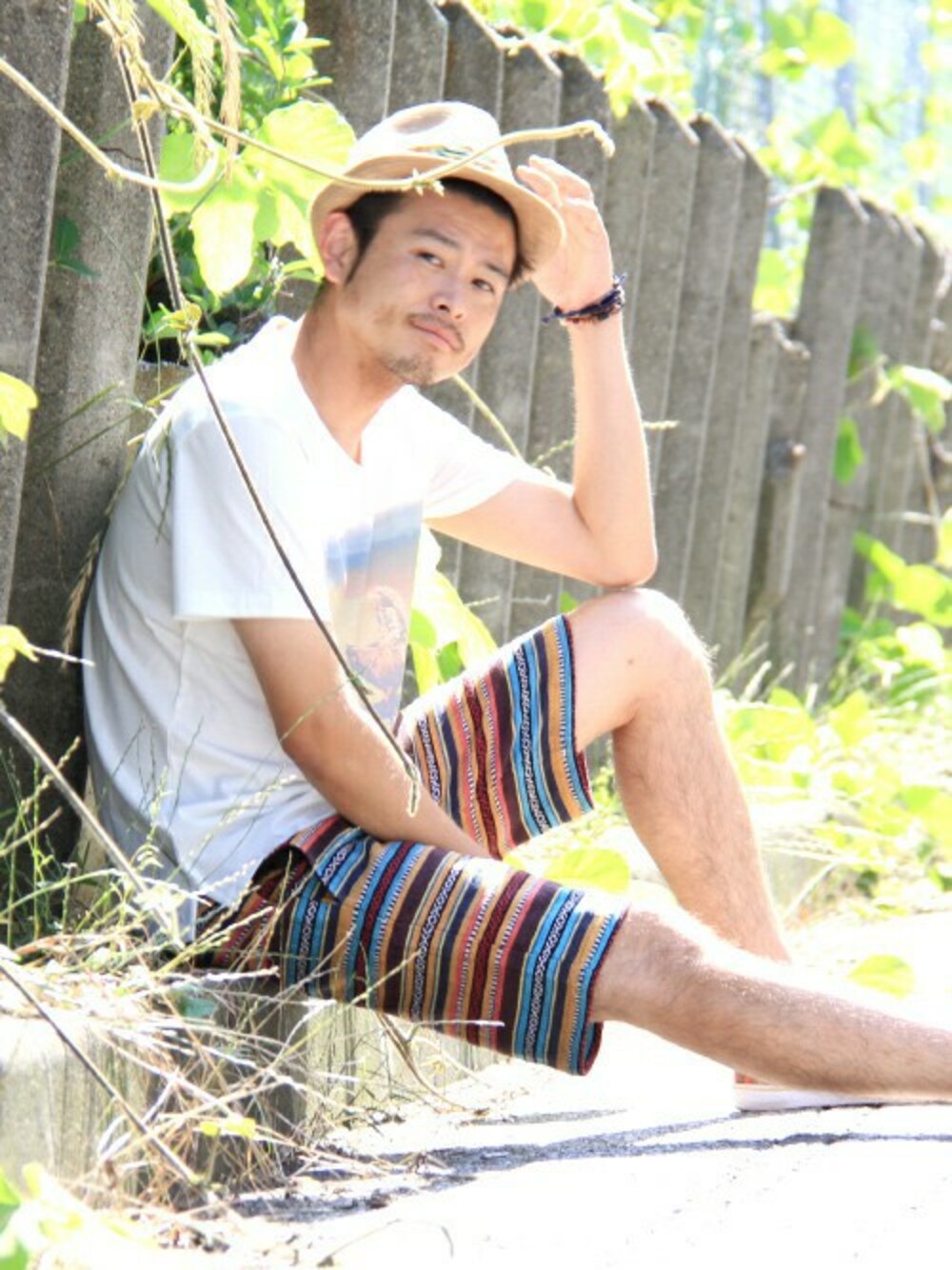 ジュートの風合いが涼しげなハットにTシャツ&ハーフパンツを合わせた夏らしいコーデ◎