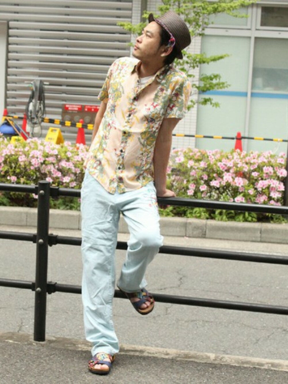 夏のおしゃれに欠かせないアロハシャツは明るめのデニムパンツを合わせて♪
