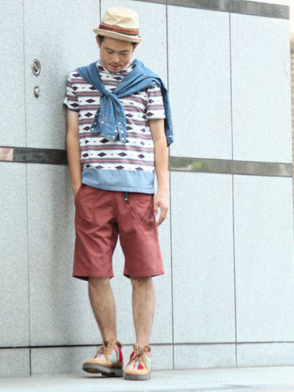 インパクトのあるネイティブ柄のTシャツが光る☆全体的にレトロな雰囲気がさりげなくエスニック感を演出します。