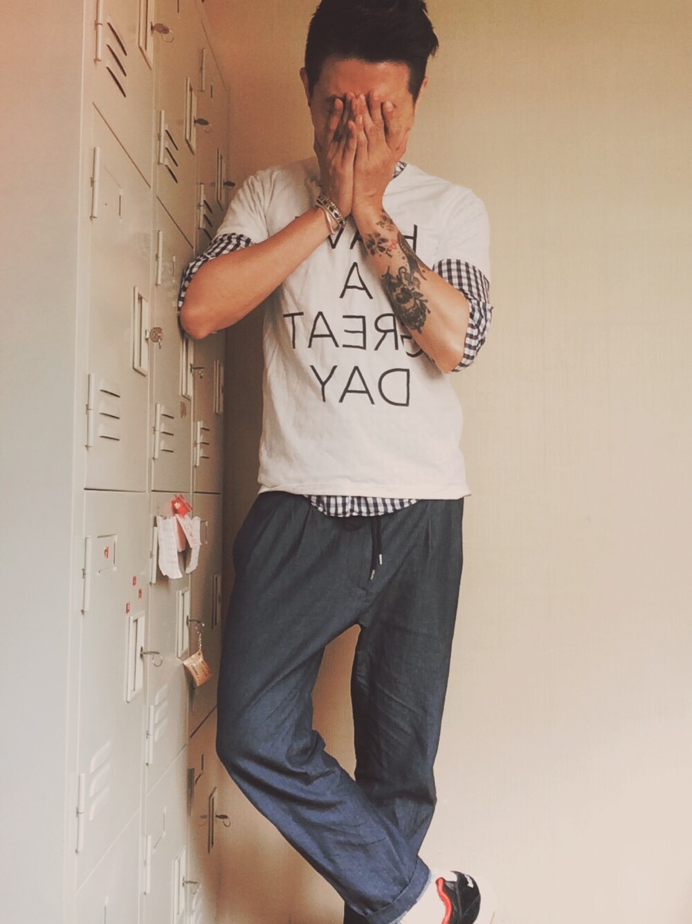 BEEABLEのTシャツ/カットソー「AMERICANRAGCIE プリントTシャツ【HAVE A GREAT DAY】」を使ったコーディネート