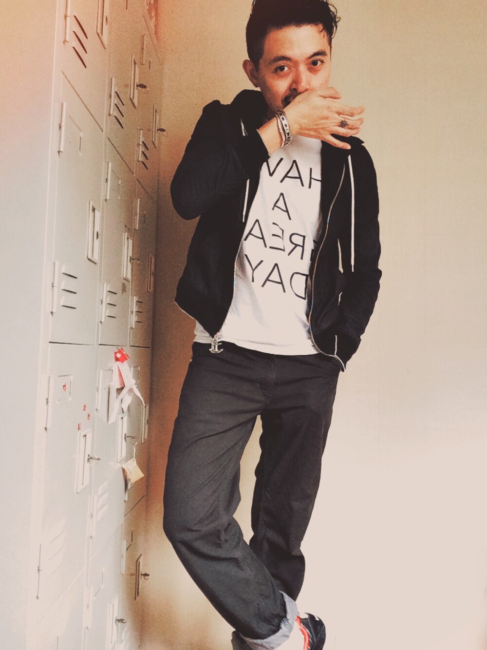 BEEABLEのTシャツ/カットソー「AMERICANRAGCIE プリントTシャツ【HAVE A GREAT DAY】」を使ったコーディネート