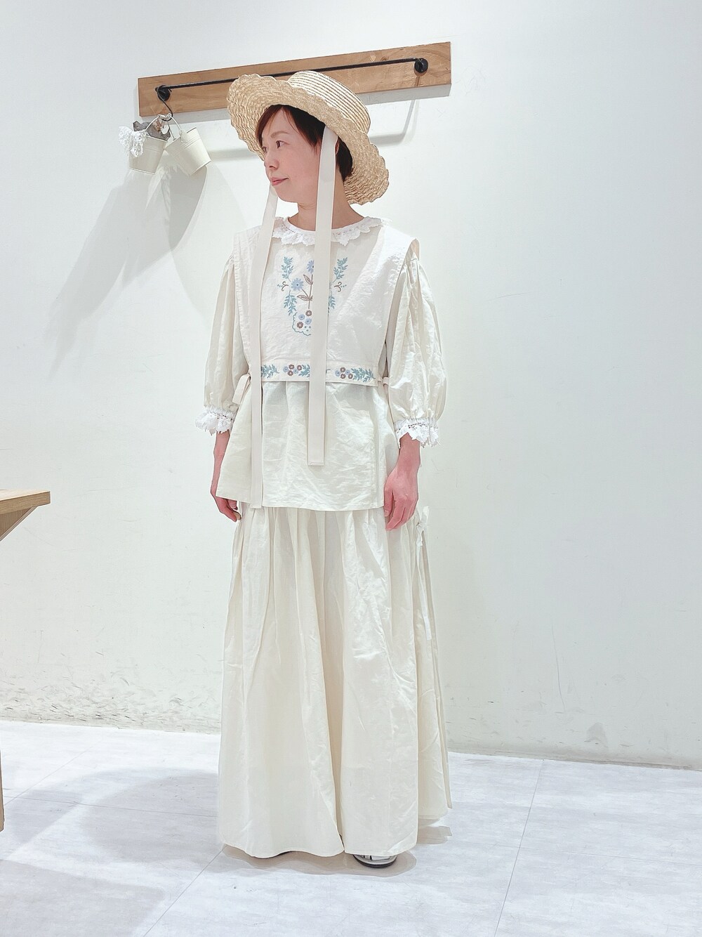 ご覧いただきありがとうございます♪ ワントーンコーデで刺繍ベストがポイントです。