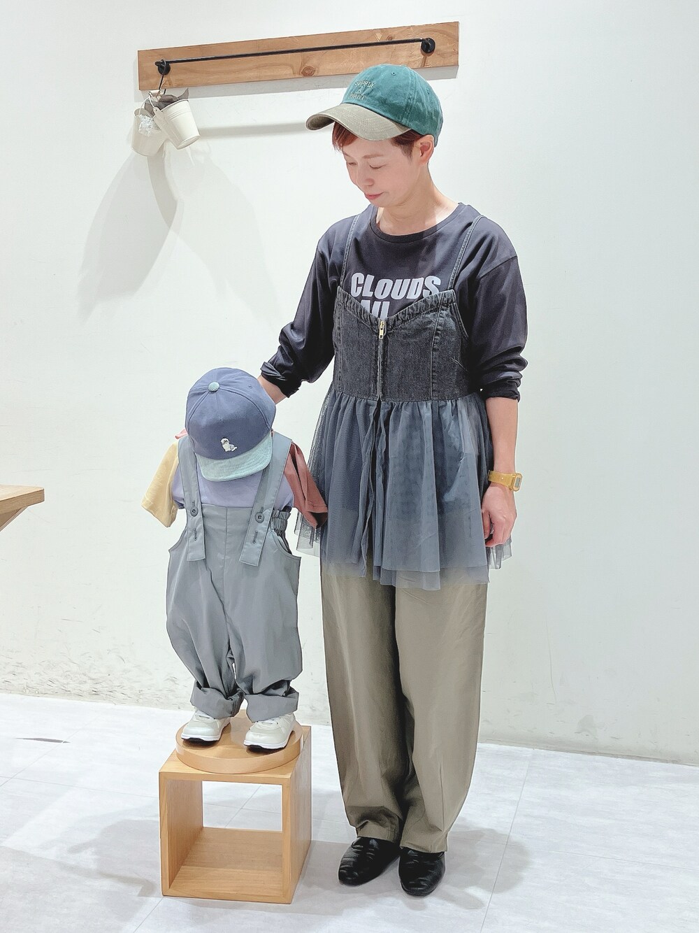 ご覧いただきありがとうございます♪ カーキパンツの親子リンクコーデです。