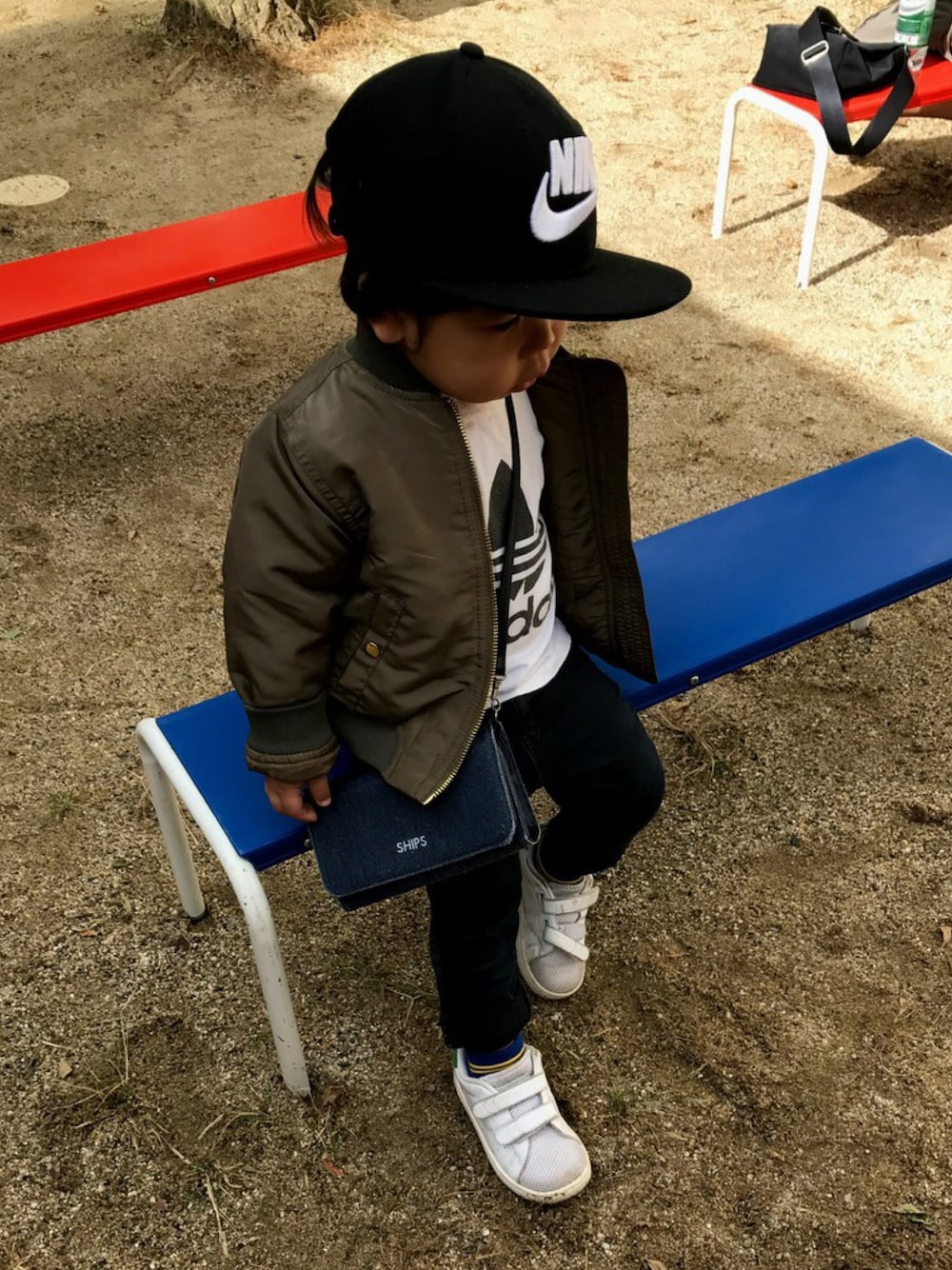お姉ちゃんとお揃いコーデです(^^) 姉弟でお揃いのコーデをするのが好きで双子のように揃えてしまいます(^^) お金が大変なので、メルカリで必死にお揃いを探しています!笑