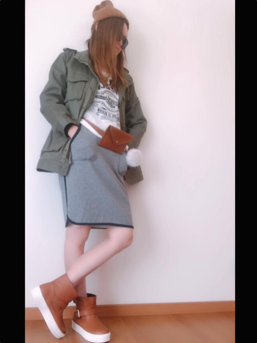 台風も去って凄くいい天気〜‼︎🌞 でも少し風が強いですね💦 昨日はパパが色々と台風対策をしてくれたので本当に助かりました😊 そして心強かったです😝 パパに感謝‼︎💕 今日のコーデはミリタリージャケット‼︎ スカートはUNIQLOのスカートでスウェット生地なので凄く楽ちん‼︎🤓👍✨ いいね、お気に入り、フォローして下さる方ありがとうございます‼︎😊 そして見て下さりありがとうございました〜🍀😎💕