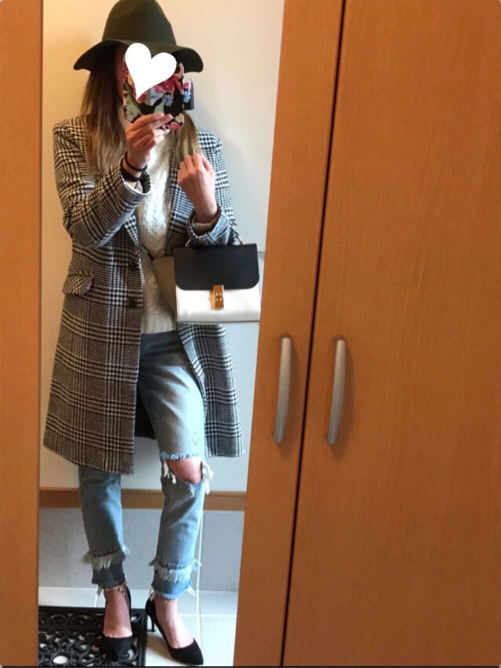 🔺SHIJU🔺のチェスターコート「『mer2月号掲載』ツイードグレンチェックチェスターコート」を使ったコーディネート