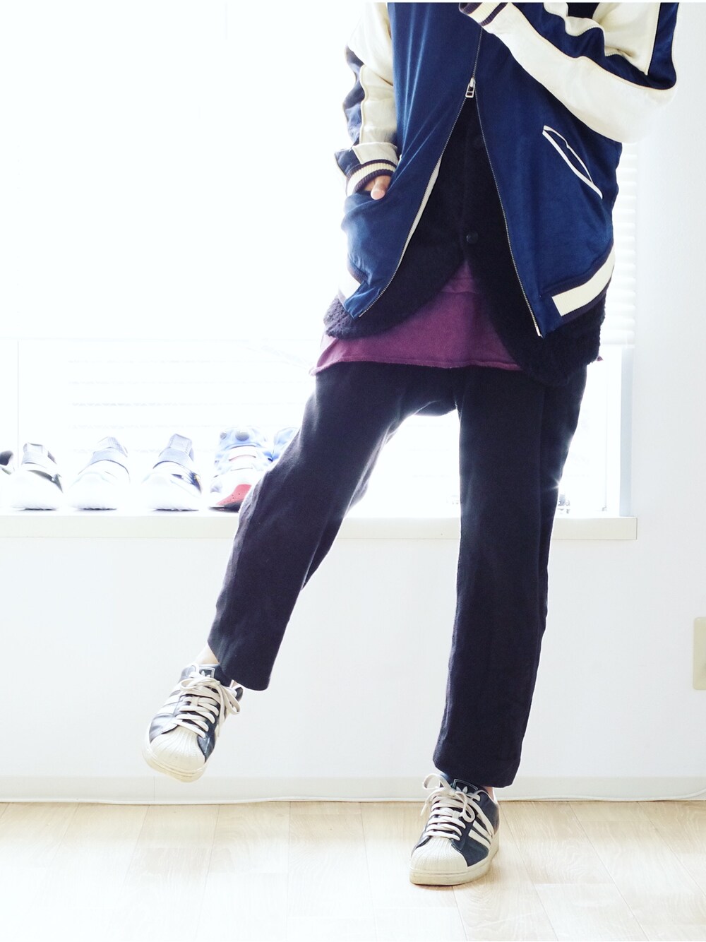 Yuto Ikedaのノーカラージャケット「スカジャン」を使ったコーディネート