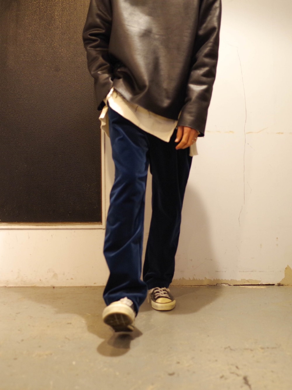 レザーに見えますか? じつはこれ、 特殊な糸で作られた フェイクレザースウェットなんです。 ムートンレザーのような質感と スウェットのような伸縮性。 着心地めちゃめちゃいいです。 /Bernabeu
