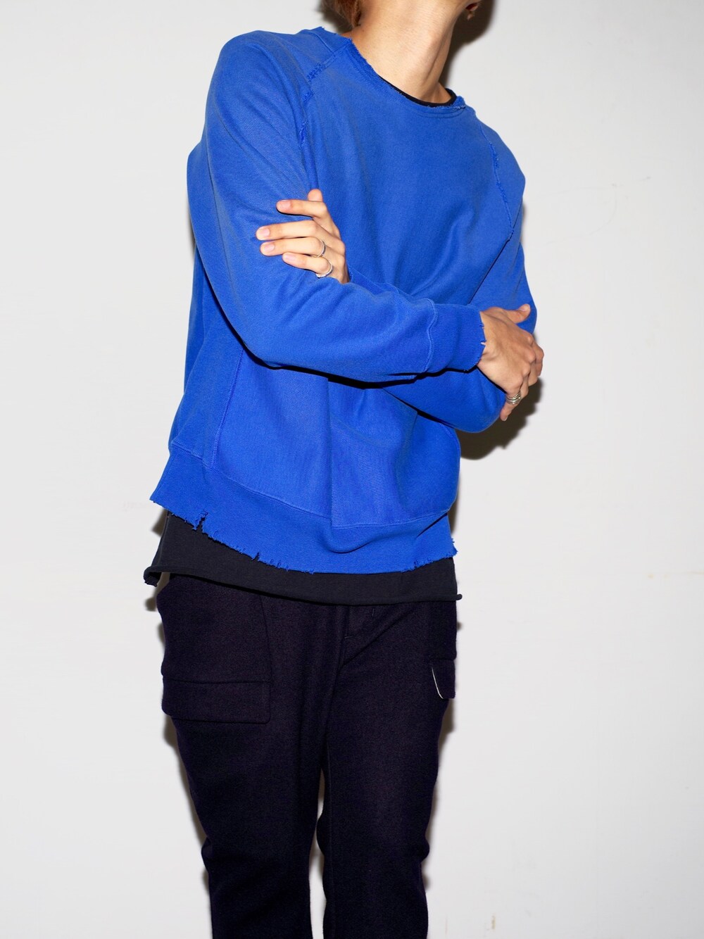 目を惹く ブルーのスウェット。 リアルビンテージのような 加工がかっこいい。