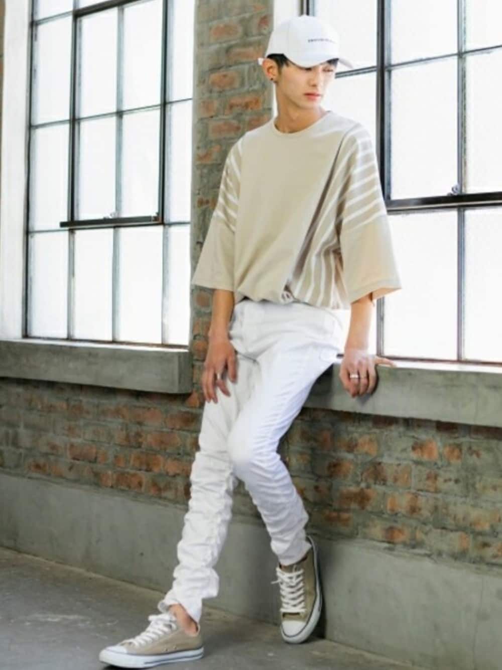 【En serio TOKYO】おススメアイテムコーデ! スーパービッグのストライプ切替TEE。 ボディの生地にはミニ裏毛生地を採用し、スウェットのような見え方を維持しながら、Tシャツのライトな着心地を実現しました! 程よく落としたショルダーラインと、改良を重ねた絶妙なオーバーサイジングシルエット! ベージュ×ホワイトで清涼感とゆる感アップです♪ 【En serio TOKYO】では新作アイテム続々入荷中です! 衝撃プライスのSALEアイテムも見逃せませんw @En serio TOKYO を是非チェックしてみてくださいね♪