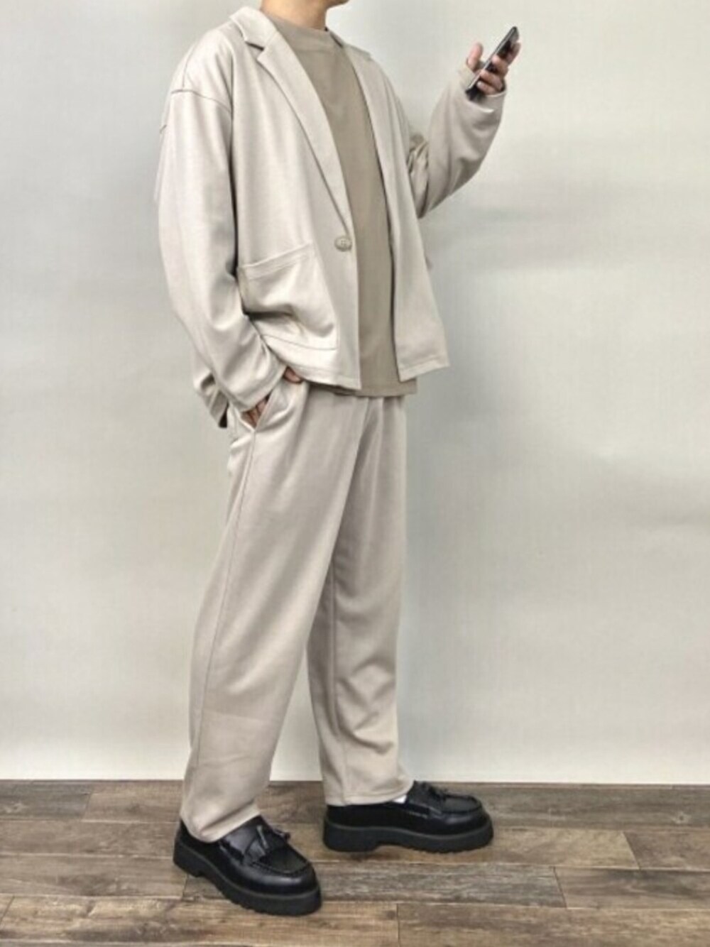 【En serio TOKYO】新作おすすめアイテムコーデ! 【BENO】より、セットアップ対応のワイドジャケットとワイドテーパードパンツがリリースされました! T/Cポンチジャージ素材で劇的に着心地アップ。 かしこまった雰囲気から脱却したカジュアルセットアップです。 リラックスしたラフな大人セットアップコーデ。 同系色のインナー着用で、シックな雰囲気を出しております♪ 【En serio TOKYO】では新作アイテム続々入荷中です! 衝撃プライスのSALEアイテムも見逃せませんw @En serio TOKYO を是非チェックしてみてくださいね♪