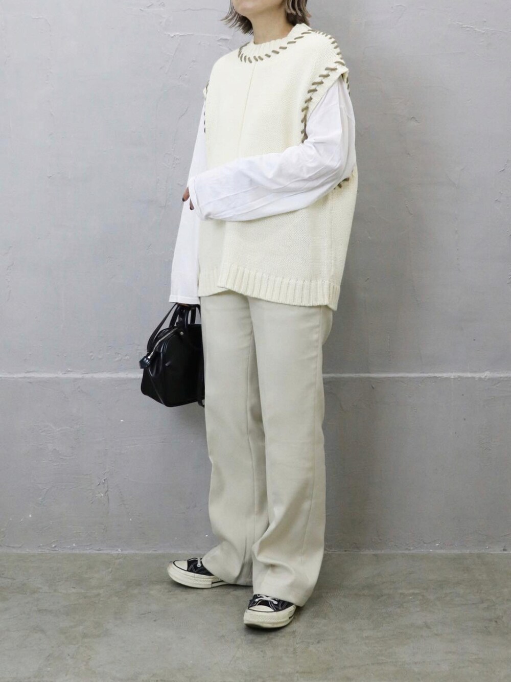 RICOのベスト「ハンドステッチニットベスト」を使ったコーディネート