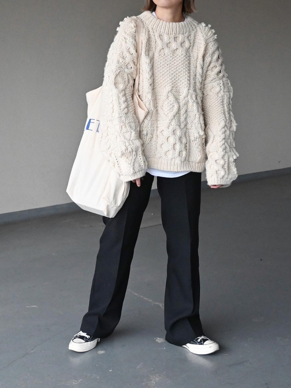 RICOのニット/セーター「パターンハンドニット」を使ったコーディネート