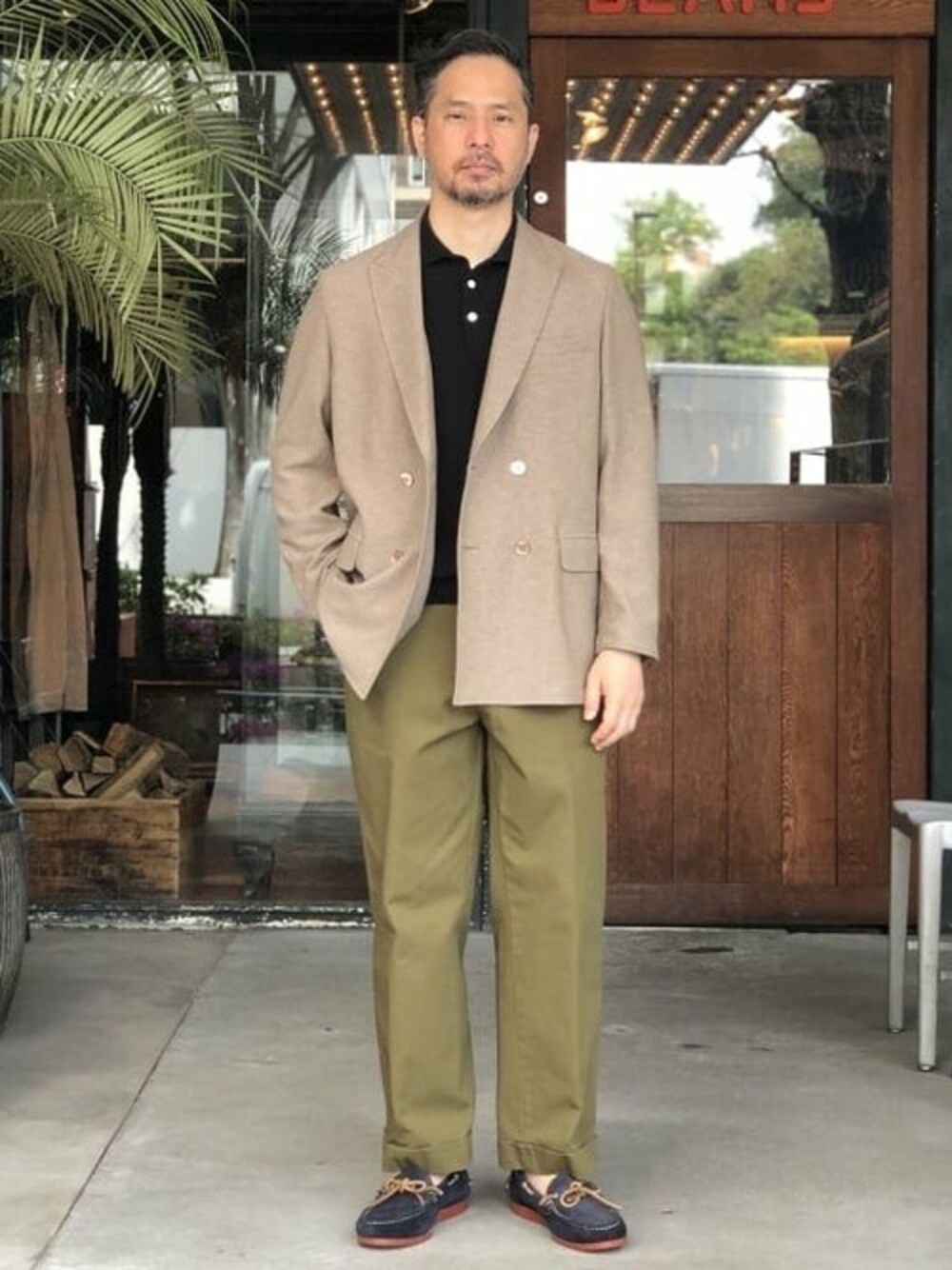 Hasebeのその他アウター「BEAMS PLUS / スラブ編み 4ボタン ダブルブレステッド コンフォート ジャケット」を使ったコーディネート