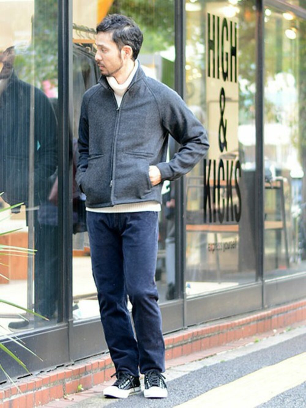 ウールメルトンのブルゾンにハイネックニットで「温かみ」のあるコーディネートを意識しました。 急に寒くなった今日この頃、ウール素材の温もりが手放せませんね!