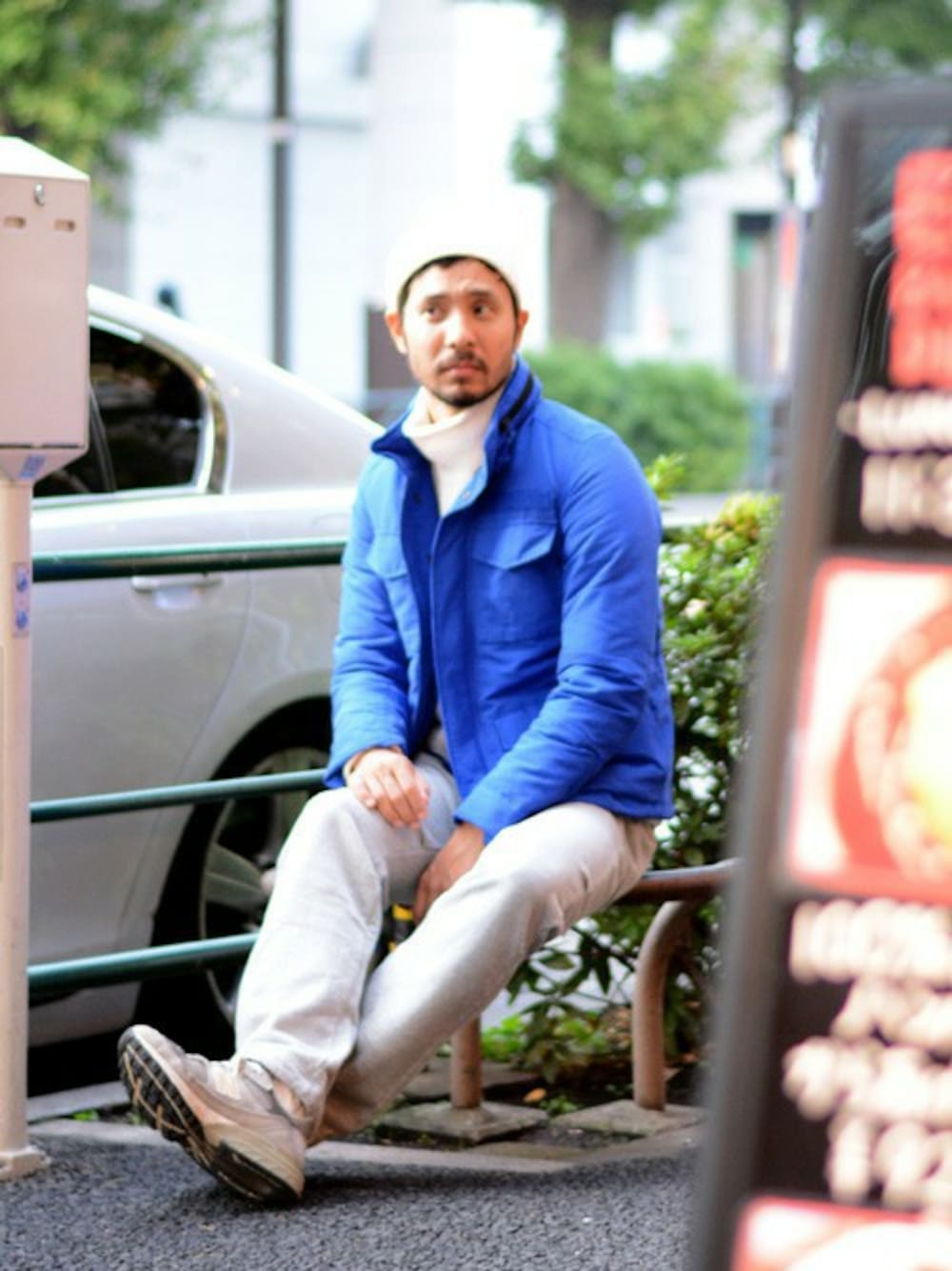 ありそうでなかったM-65型ダウンブルゾン、着丈も短くスッキリとしているので スウェットパンツ&スニーカーでスポーティーにまとめました。