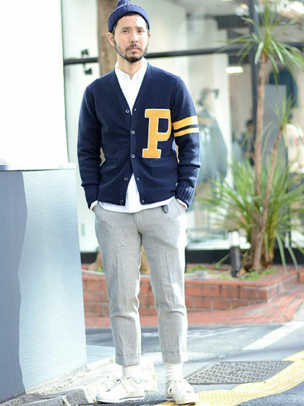 シンプルなプレッピースタイルをイメージしてスタイリングしました! 最近着ている人、あまり見かけない「レタードカーディガン」はおすすめですよ!