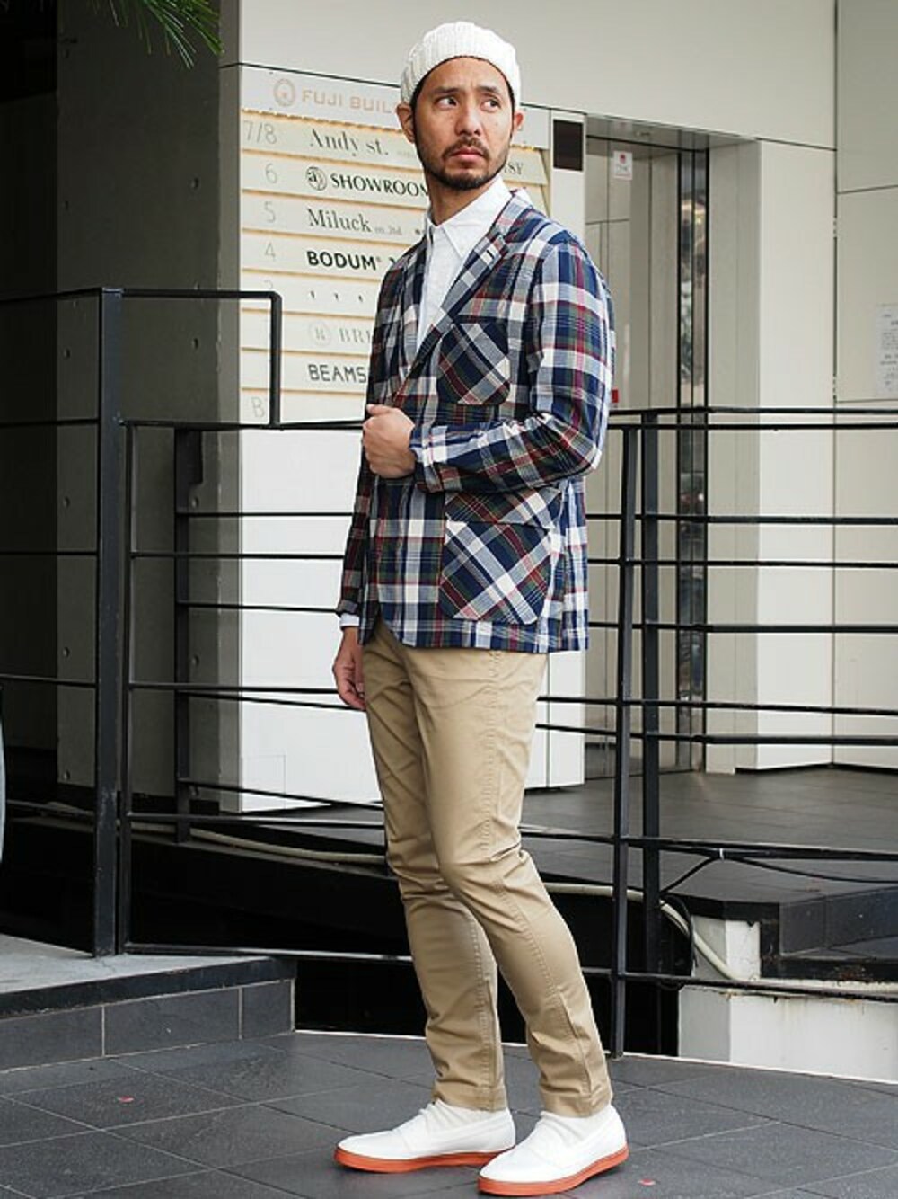 今が旬のジャケットスタイルです!シャツ地のジャケットはラフにネクタイ無しが今の気分です。 細身のパンツに合わせて、スッキリとしたアイビースタイルで(笑)