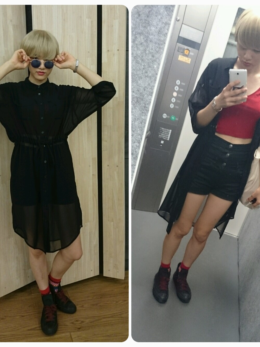 金髪ウィッグで。 ワンピースでも羽織でもおっけい 中身 トップス forever21 ボトム GU スニーカー Converse サングラス ?