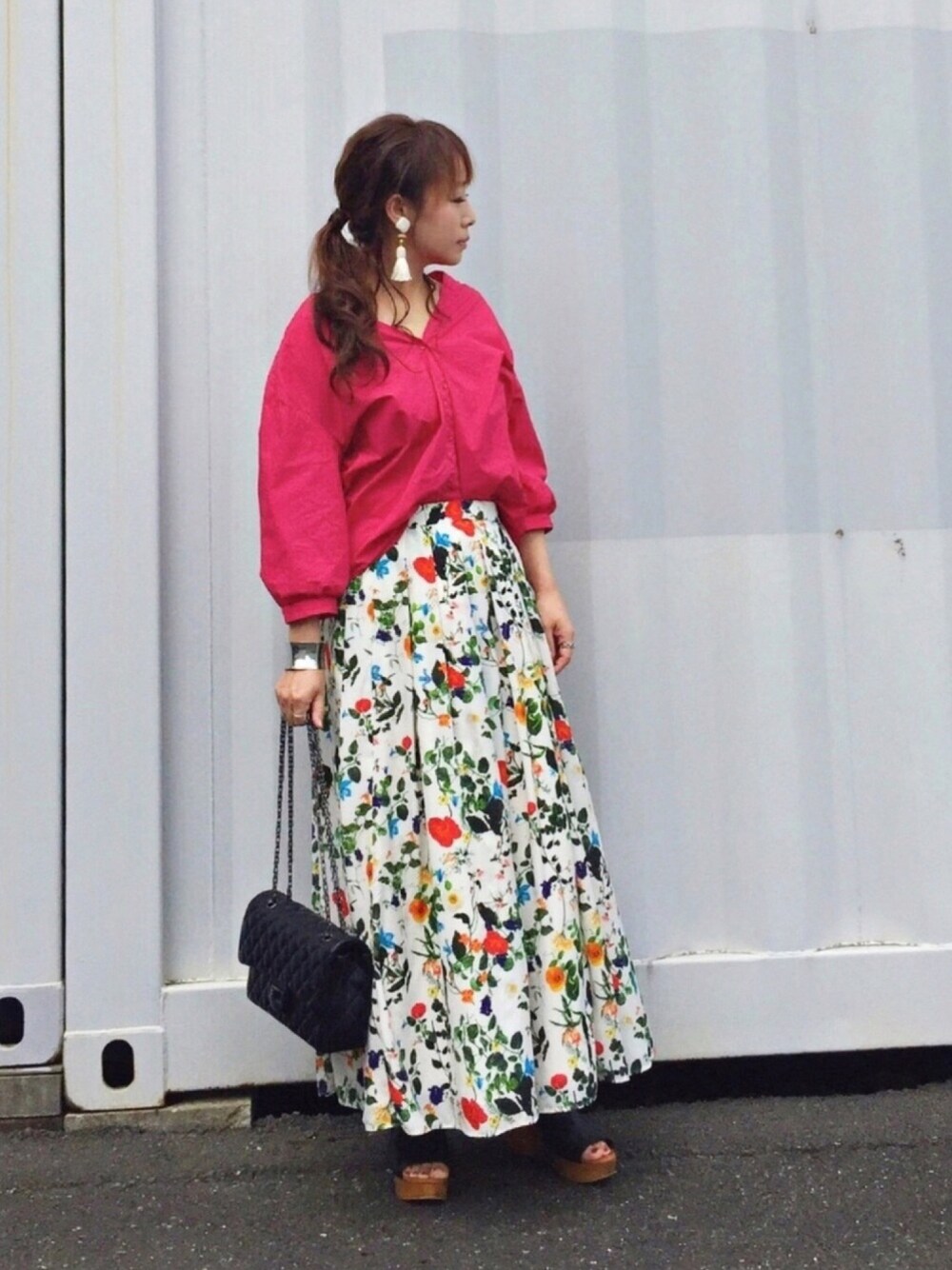 #狂わせピンク💖 参加します🖐🏻😋✨ 狂わせる…うーん、ハードル高し🙈 なので… いつもなら歳的にもキャラ的にも敬遠するピンクなのに、 あまりのデザインの可愛さと、ピンクの中でも 1番どツボの色味にブワー😍✨っとなり、レジへ直行という 私の正常な判断を狂わせたアイテムで参加😂😂 色味は小窓の商品画像の方が近いかな?🤔 背中が結構ガバりんちょ🙈💕 溺愛アイテム、NOISE MAKERさんの花柄スカートを合わせて、 思いっきり華やかにしてみました🌸🌼🌺