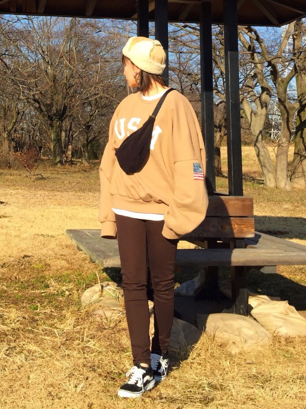ドロップショルダー具合、サイズ感、ロゴ、カラー、 全てがツボったスウェット🙈💕 裏起毛なのであったかい☺️ この日は真冬とは思えないほど気温が上がったので アウターいらずでした🎵 何ヶ月も前から探してたブラウンスキニー、 なかなかコレという物に出会えませんでしたが、 色味、履き心地、ともにバッチリな物をSaleで発見👀✨ 嬉しい❣️