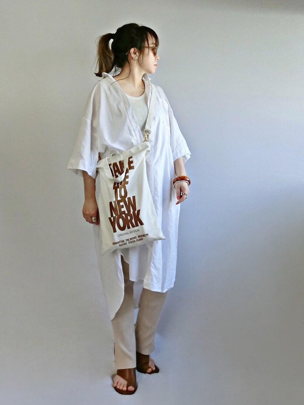 ホワイト×ベージュ×ブラウン 綿100%の柔らかい肌触りとシルエットが 気に入ってるGUシャツワンピ✨ ホントは5部袖のデザインだけど、XL着てるので、 7部袖くらいになるのも気に入ってます💕 近所のGUで見かけないと思ったら、 どうやら大型店限定のアイテムみたいです👀