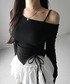 なーみのTシャツ/カットソー「※【 裏起毛 / カップ付 】サイドシャーリングリボンワンショルトップス / side shirring ribbon one shoulder tops」を使ったコーディネート