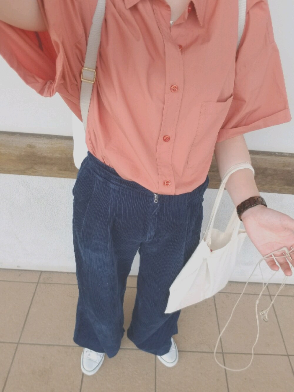 _ オレンジ🍊×ネイビー💤 _ コーデュロイワイドパンツが はける時気になりました◎