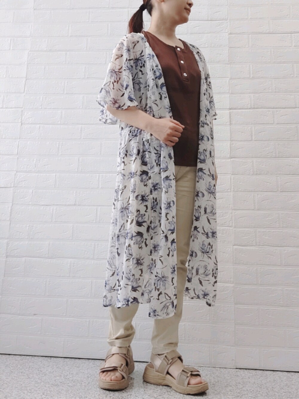 こんにちは。BELLUNA PLUSです。 ご覧いただき、ありがとうございます☺️ 連休が明けました。今日はリハビリの日( ̄▽ ̄;) タンクトップにガウンワンピを羽織って、二の腕カバースタイルです。 縦のラインの編み地がすっきり見せてくれるタンクトップは、前ボタンがアクセント。インナーとして着たときに、ボタンが見えると可愛いさがプラスされた印象に✨飾りじゃないので、ボタンを外した着こなしもできます。