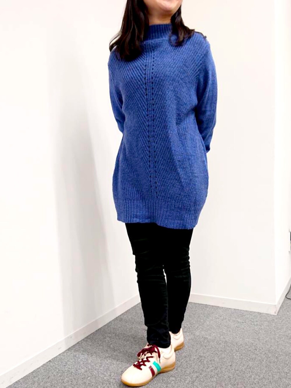 いつもいいねを押してくれてありがとうございます♡ 暖かな風合いの“あぜ編み”上質ニット。 今季大注目の“ボトルネック”&旬のアイレットデザインで、 スタイルをきれいに魅せてくれます♪ ベージュのスニーカーを合わせて休日ラフスタイルだけど パンプス合わせでオフィスカジュアルにも変身できます♪