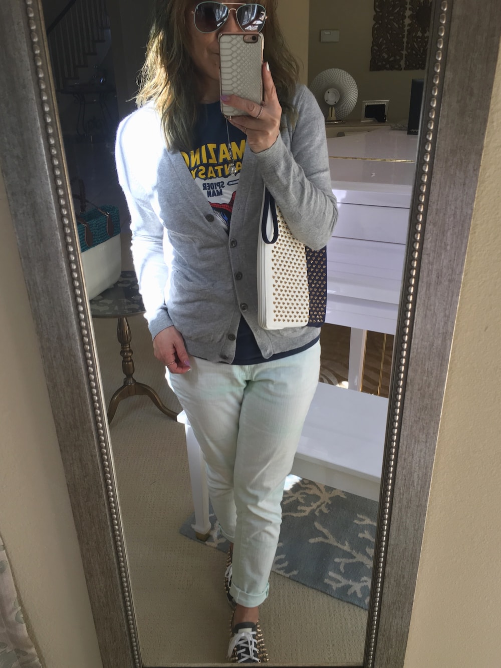 コミックTにVネックカーデ +小物にダブルスタッズを♩ カーデは何気に水玉模様で春*