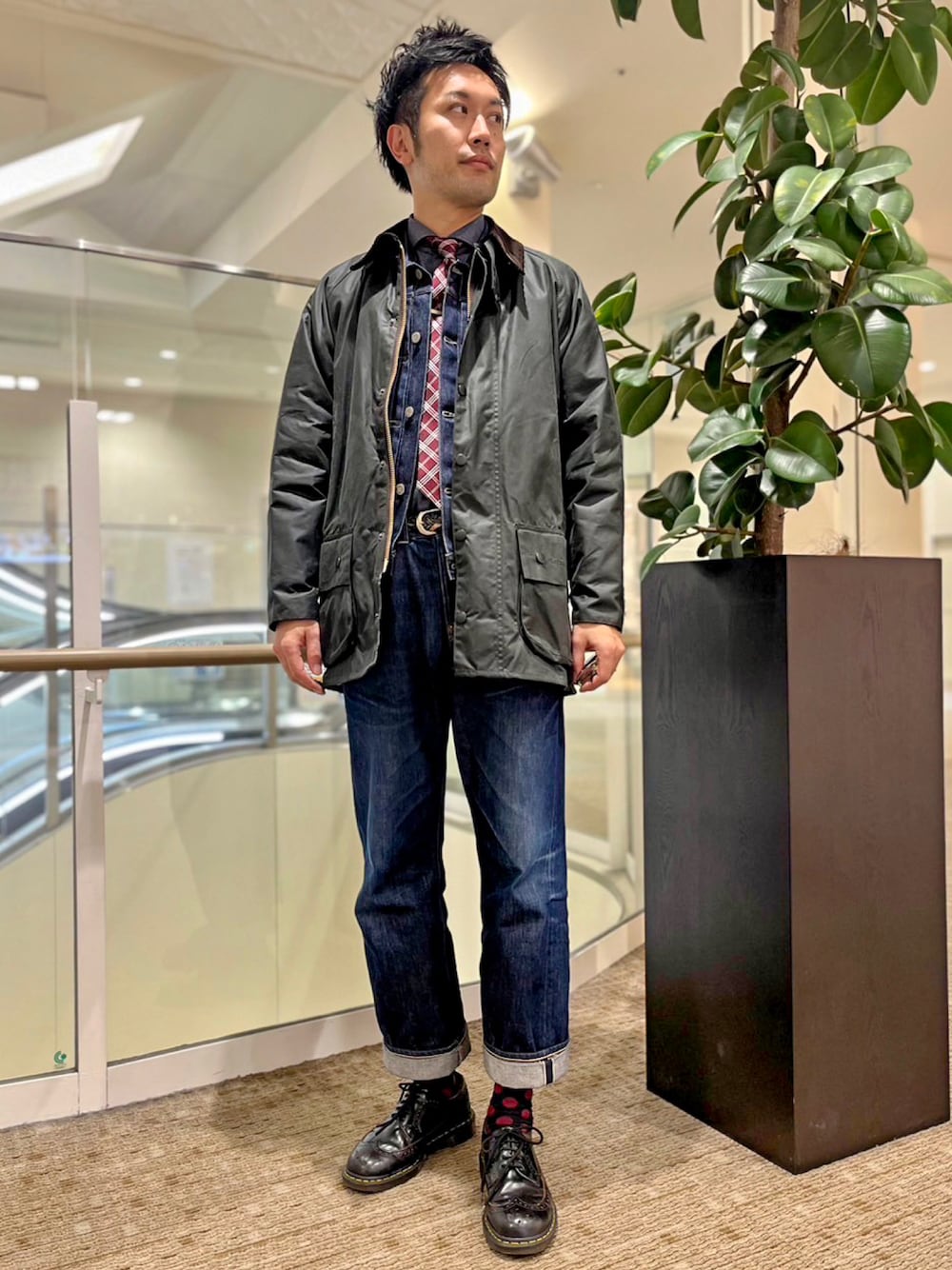 MY FIRST Barbour 初のバブアーのはBEAUFORT のセージ。 ジャケットの上に着れる丈のBEAUFORTにしました。 リーバイスのデニムのセットアップと合わせてみました。 ジャケットをPSFAのREDAのダブル紺ブレザーに変えたコーディネートもしてみました。