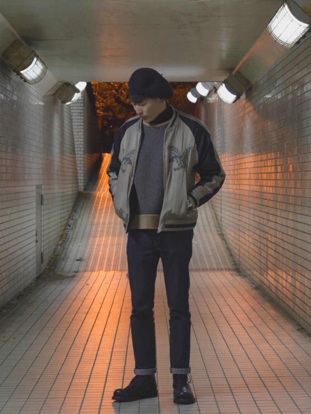 ぎこちないっすねぇ〜笑 スカジャンを1番外で羽織る時期では無いと思うんですが インナーのニットがクソあったかいのでイケちゃうっていう🤦♂️ ちゃんと一眼で撮ってみました。 よかったらフォローお願いします!