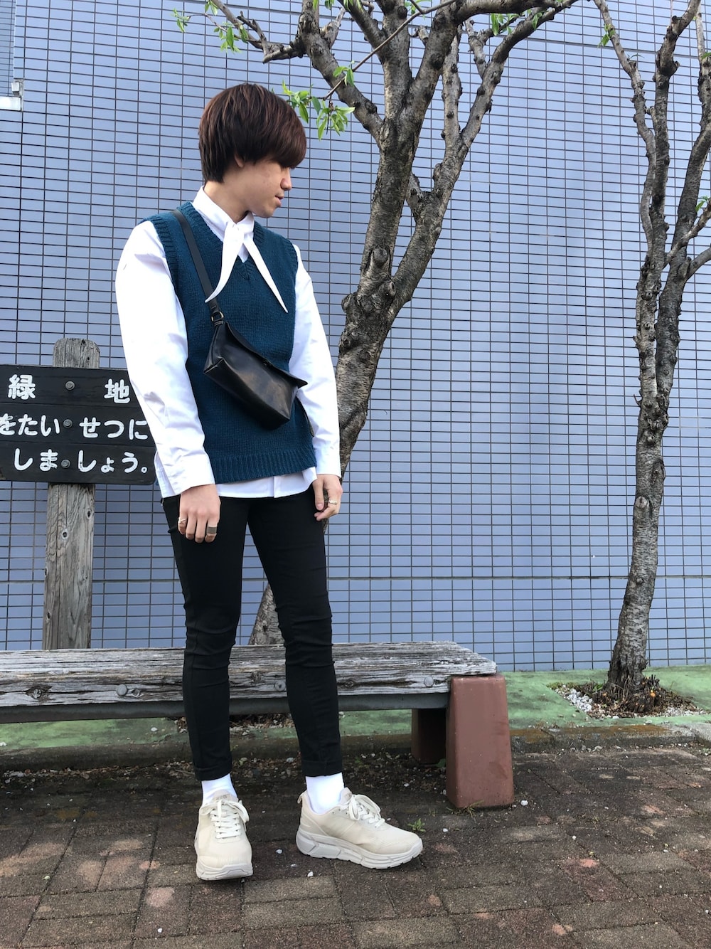 白シャツ×青ベストコーデ🦺 久々に青ベスト引っ張り出して着てみたけど若干小さくなってた💦 俺のサイズが大きくなったかな🤔笑