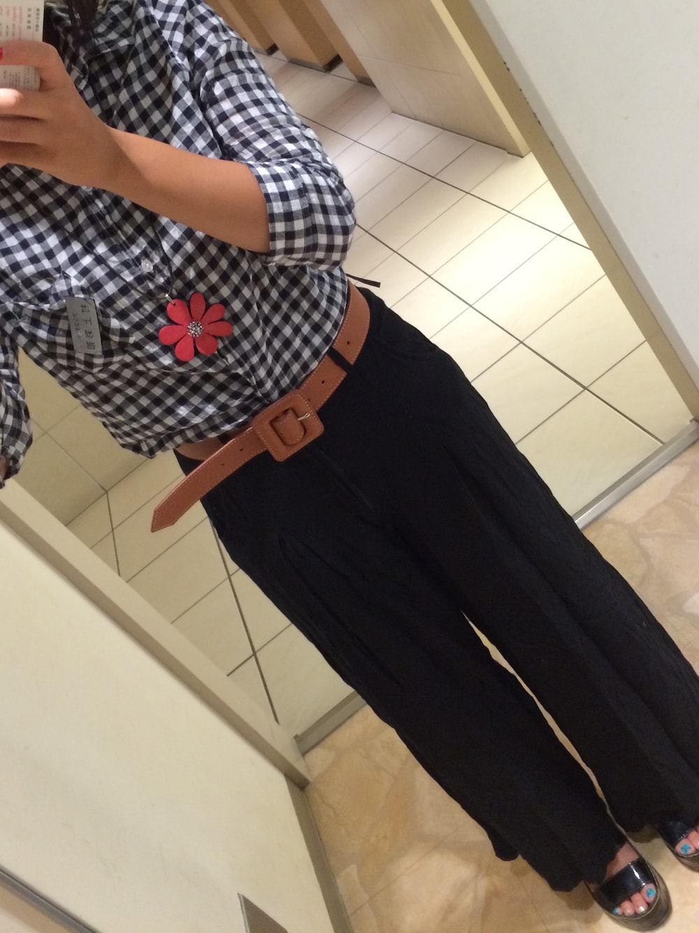すこし前の。。。 シャツインコーデが好きな模様。。 これは昔のパンツでワイドなのかガウチョなのかスカーチョなのか。。。 白シャツを合わせるとキャリアウーマンになってしまうし色物チェックのシャツインは牧場の人になってしまうのでギンガムチェックのモノクロで。。 そこにワンポイントでお花のネックレス。 モノトーンと相性の良いビビッドカラーのネックレス。。 靴は厚底のスポサン。。